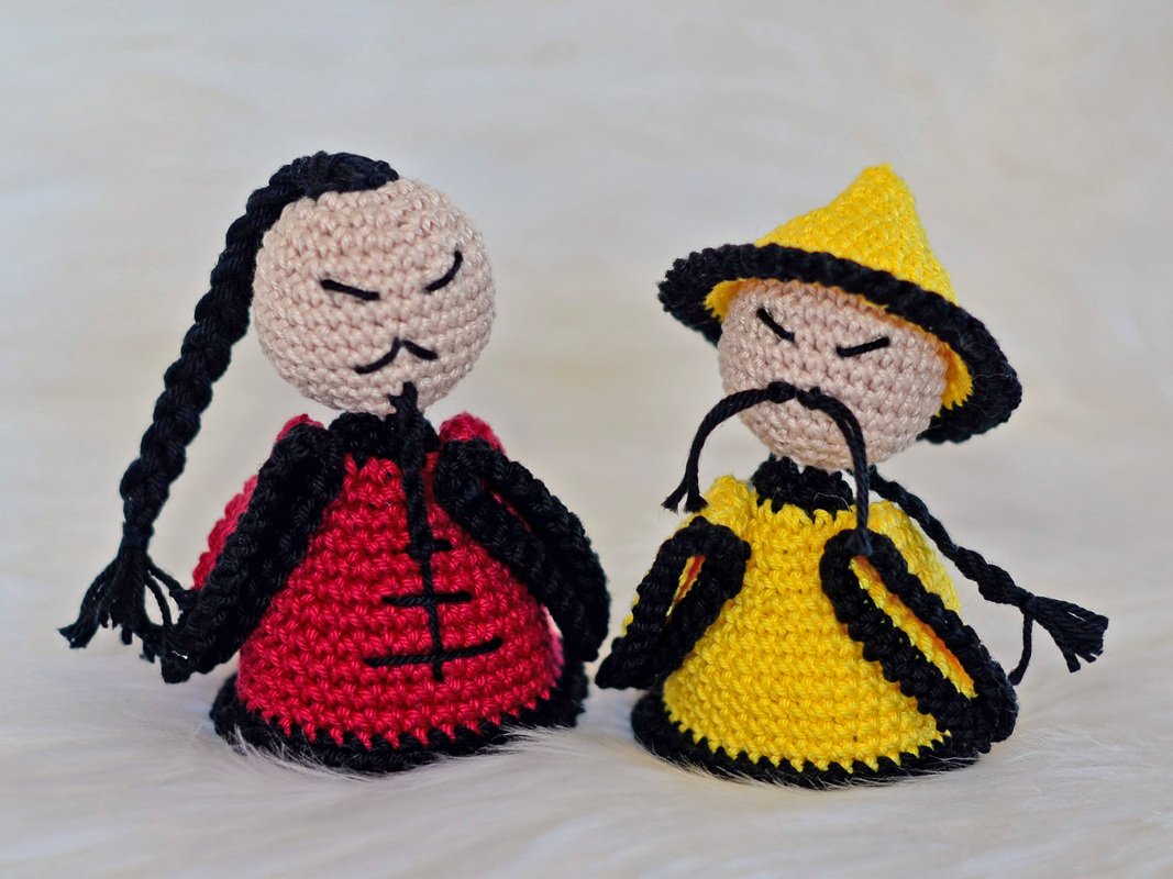 Mit dieser Anleitung zeige ich dir, wie du diesen Asiaten / Samurai (gelber und roter männlicher Asiat) häkeln kannst.