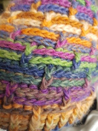 Du benötigst ca. 250 bis 300 m/LL 6-fädigen Mützenbobbel aus Modalmix. Du kannst natürliche auch andere Mützenwolle verwenden;