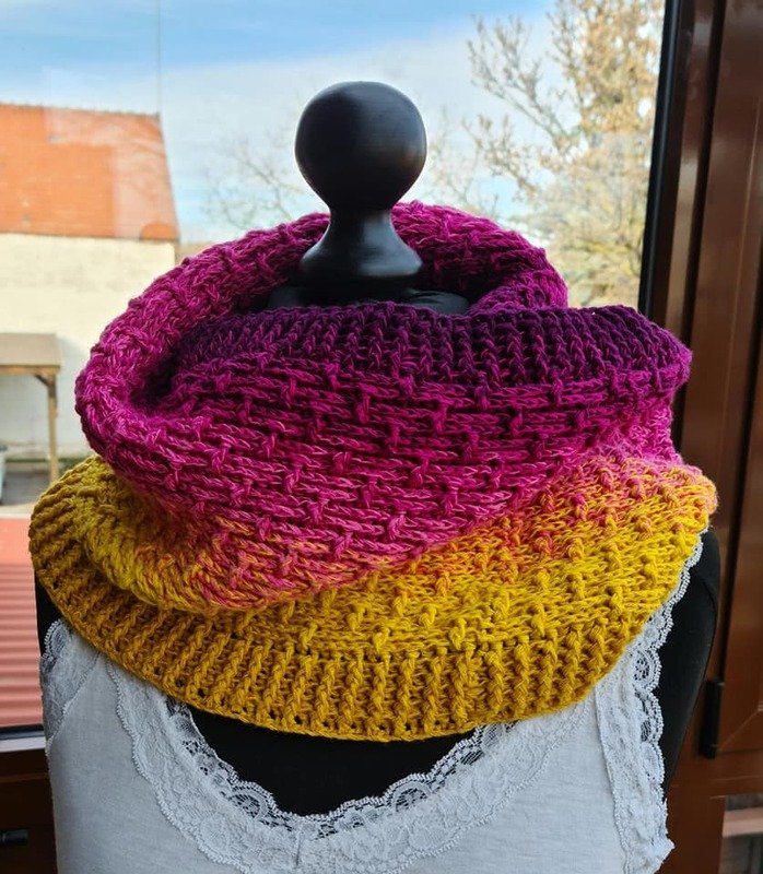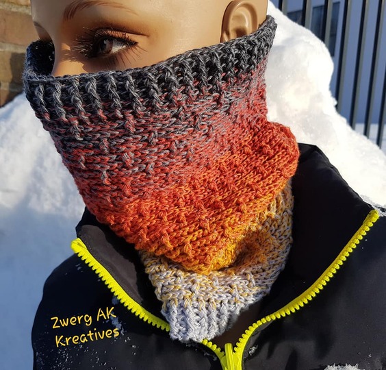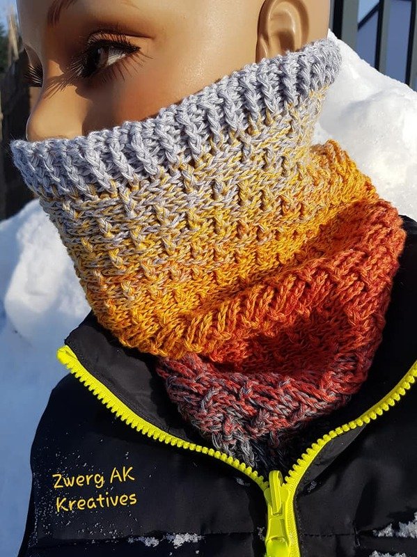Du benötigst ca. 800 - 1000 m/LL 4 fädiges Farbverlaufsgarn aus Modalmix. Für eine Halssocke reichen bereits 500 m/LL. Die genau Menge hängt davon ab wie lang und wie breit du deinen Loop häkeln möchtest. Du kannst natürlich auch anderes Garn verwenden.