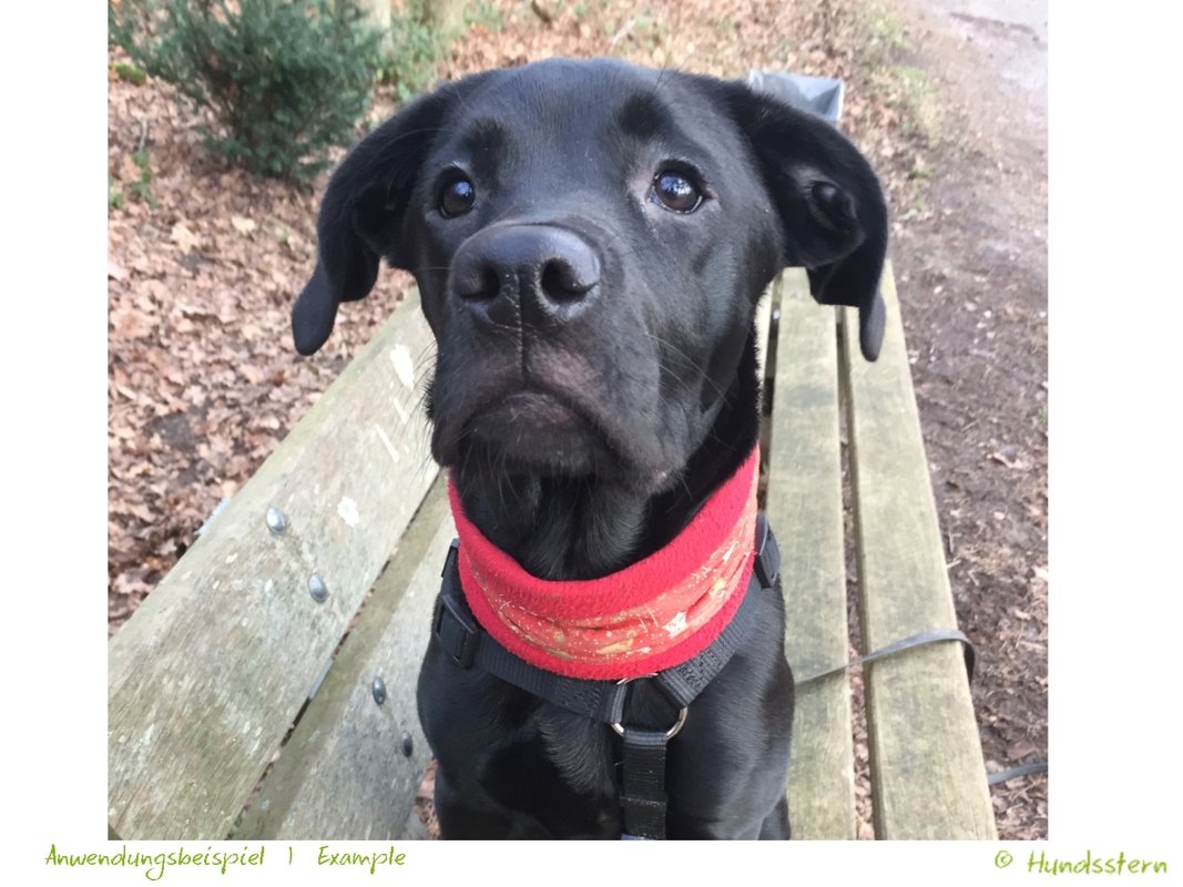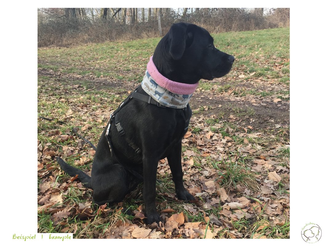 Der Schal wird nach den Maßen des eigenen Hundes gefertigt.