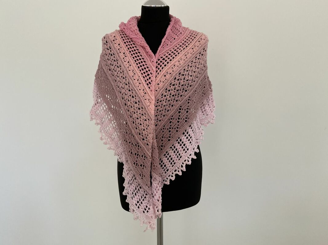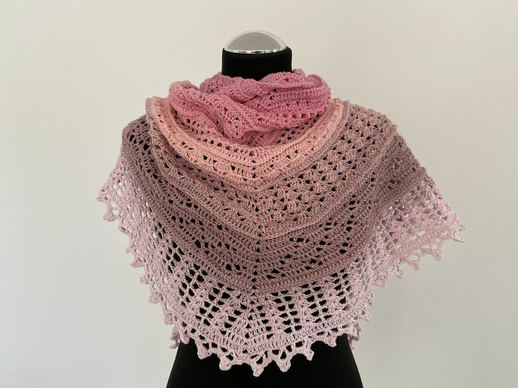 Durch entsprechende Zunahmen wird es eher ein flaches Tuch, das am Hals nicht so sehr aufträgt.