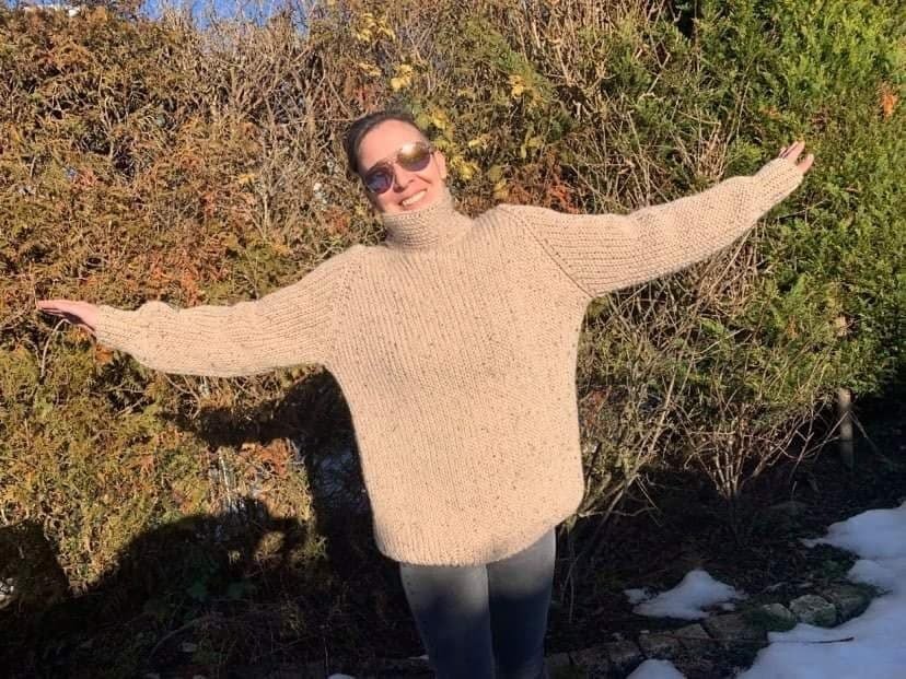 Ein kuschliges Winterpulli-Ergebnis erhält man mit Wolle für Nadelstärke ~5.