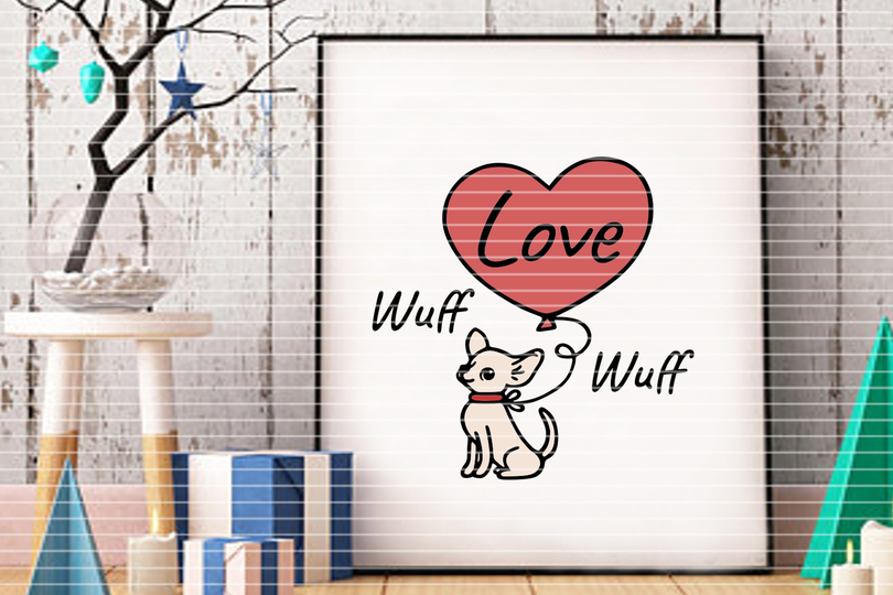 Eine süße Plotterdatei mit Chihuahua Hund und Herz Ballon für