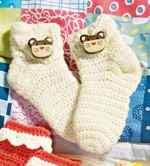 Einfach gehäkelte Babyschuhe in zwei Varianten. Die liebevollen Detail machen diese Söckchen zu etwas Besonderem.
