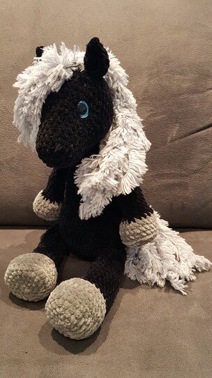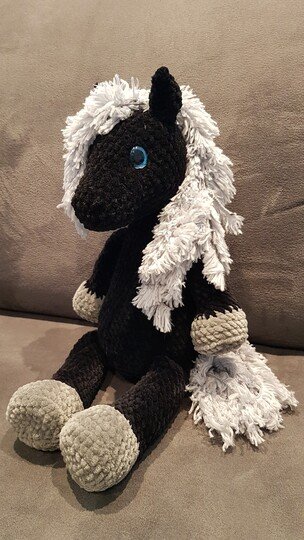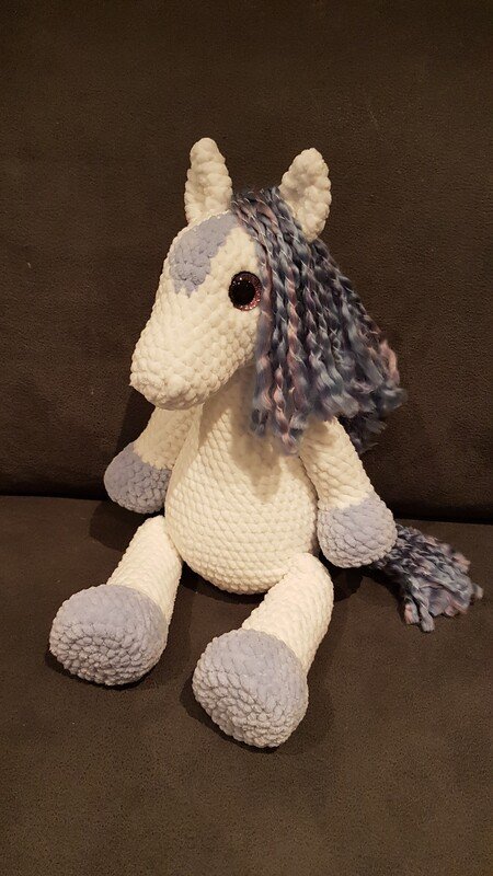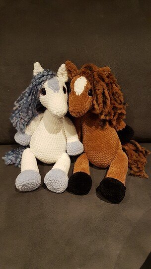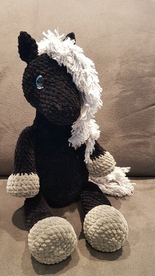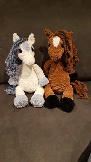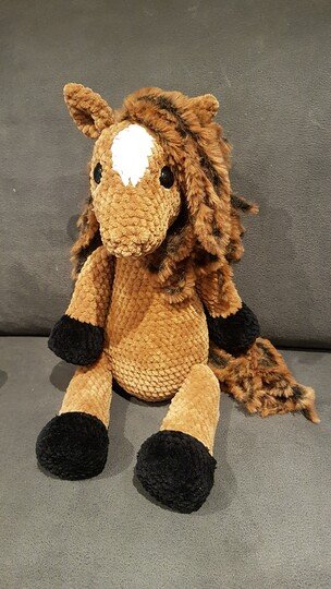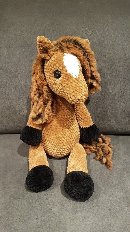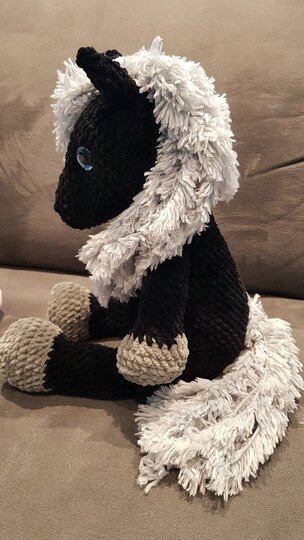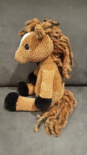Fransengarn für Mähne und Schweif (z.B hier „LYA“, Alize-Decofur, YarnArt-Mink, YarnArt-Tango)