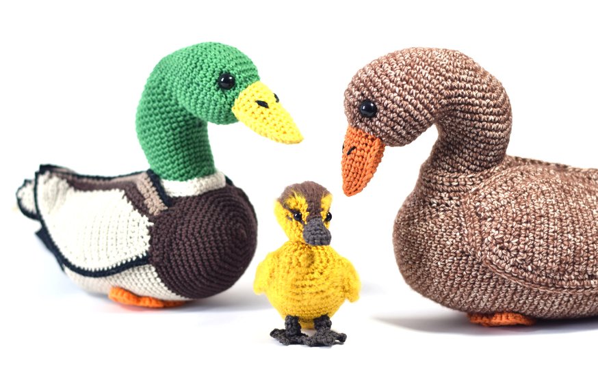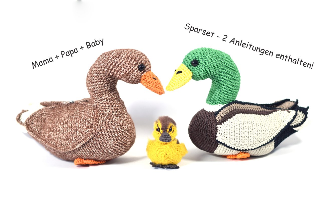 Es umfasst die großen Stockenten (männlich und weiblich) sowie die Entenküken bzw. Baby-Enten. Die Anleitungen sind jeweils auch separat erhältlich.