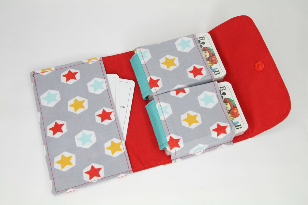 Das Etui gibt es in zwei verschiedenen Größen: M – für Kartenspiele bis 110 Karten (z.B. UNO, Rommé, Phase 10) und L – für Kartenspiele bis 160 Karten (z.B. Skip-Bo).