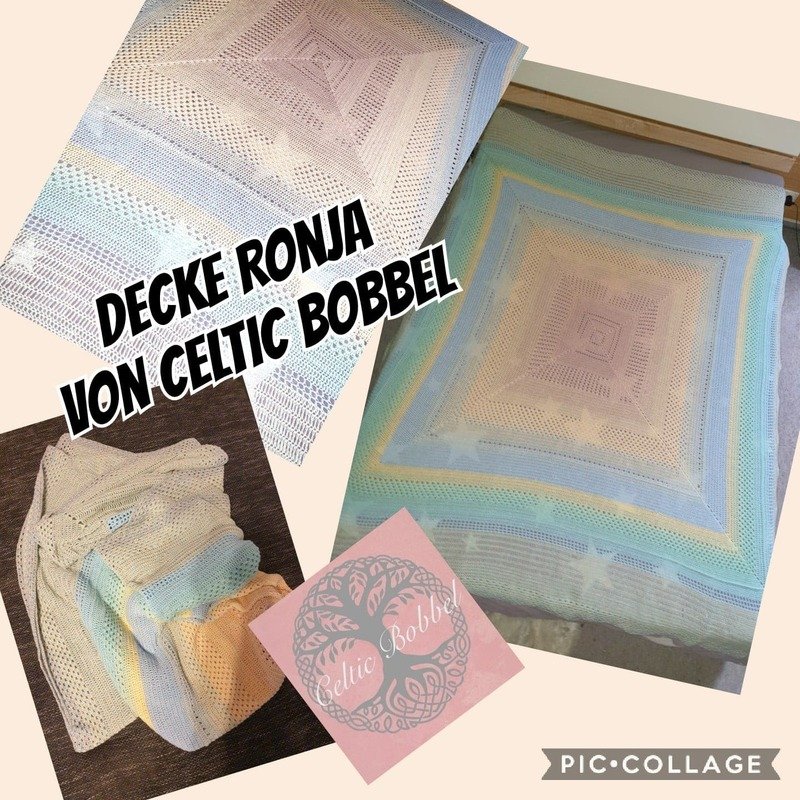 Ich habe die Decke mit 4 fäden und einer Nadelstärke von 3,75 gehäkelt ( sehr locker) und