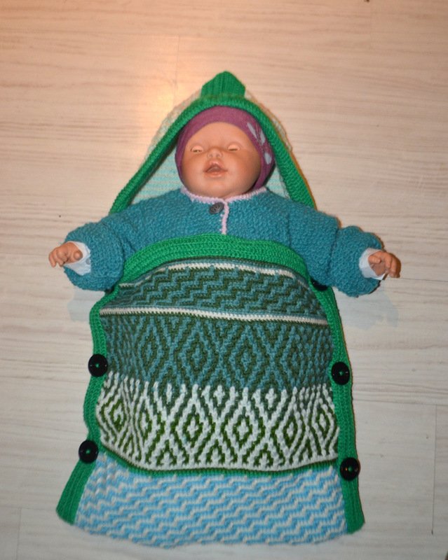 Dieser gehäkelte Schlafsack und die Babydecke mit schönem Mosaik-Muster ist genau das Richtige für Babys. Aus warmer, kuscheliger Wolle- perfekt geeignet als schönes und zugleich praktisches Geschenk zur Geburt.