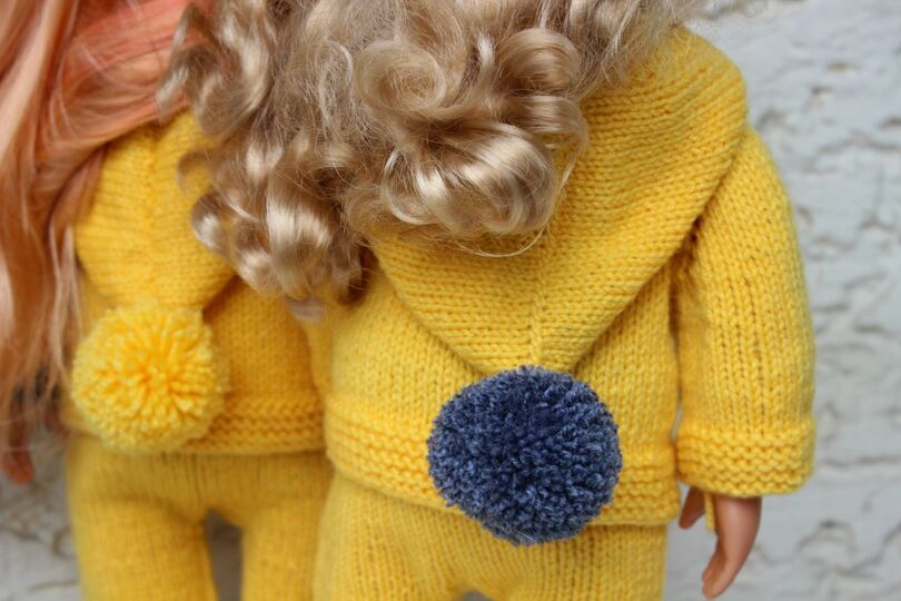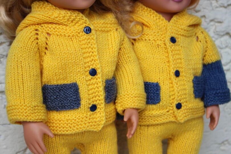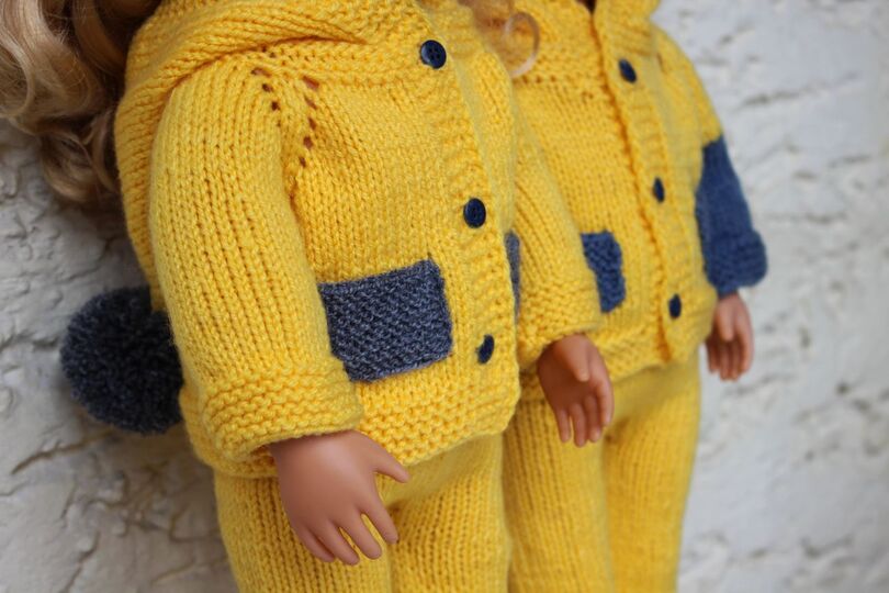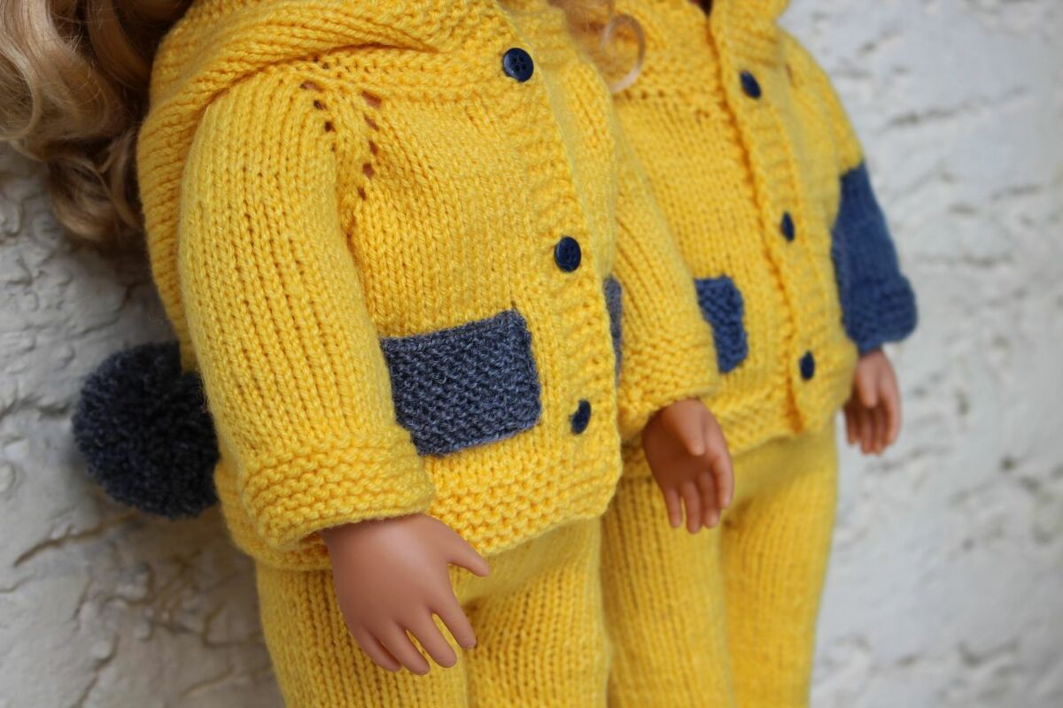Gestricktes Puppenjacke und Puppenhose. Ein ideales Geschenk für die Tochter oder Enkelin!