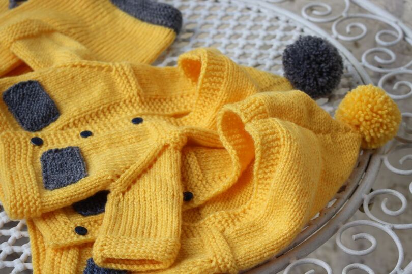 ca 100 gr Merinowolle in den gewünschten Farben mit Lauflänge 125 m/50 g (z.B. Lana Grossa Merino Uni), Nadelstärke 3,5 mm, 3 Knöpfe.