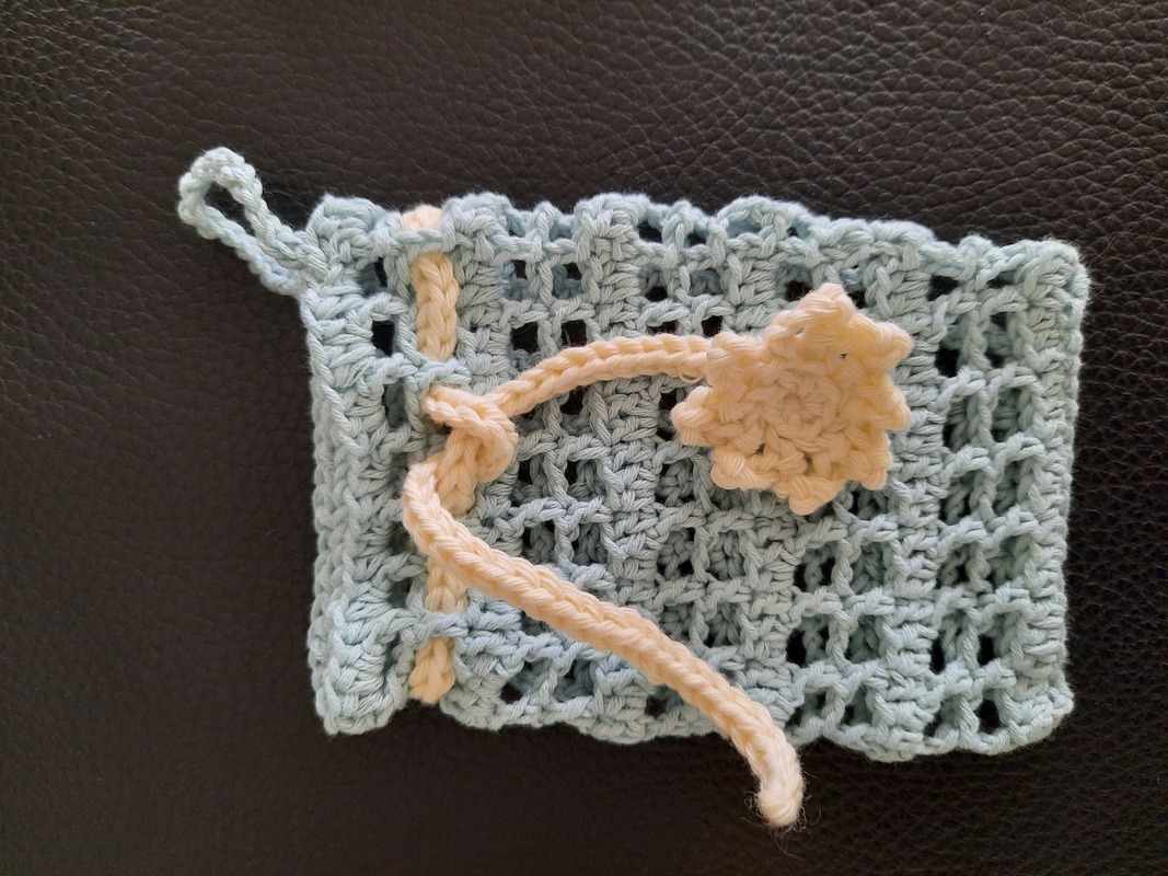 Die Grösse des Beutels kann leicht geändert werden, natürlich wird dann entsprechend mehr oder weniger Garn benötigt.