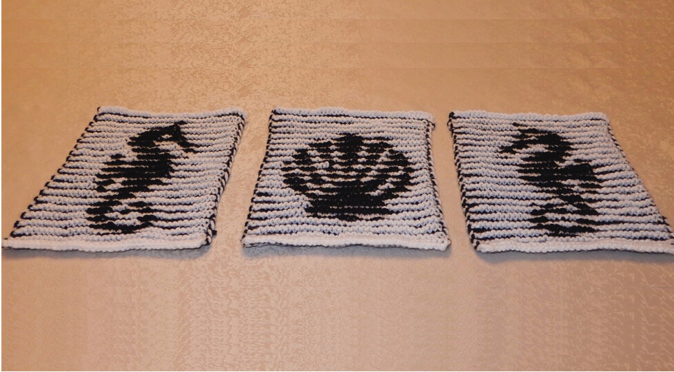 Du erhältst zwei pdf-Anleitungen für das Seepferdchen und die Muschel. Um diese Blöcke nachzuarbeiten, musst du nur rechte und linke Maschen stricken.