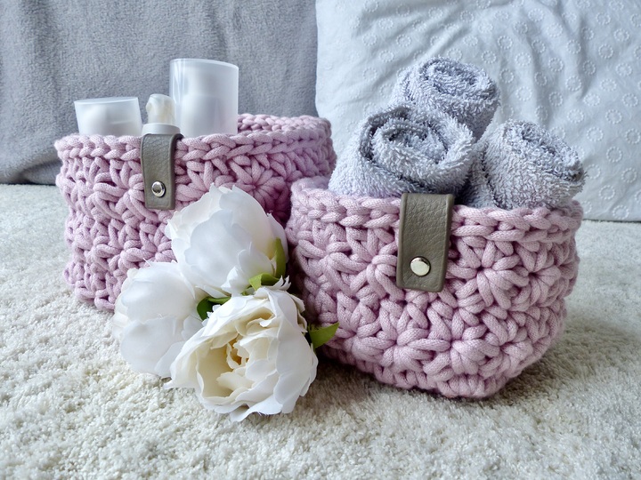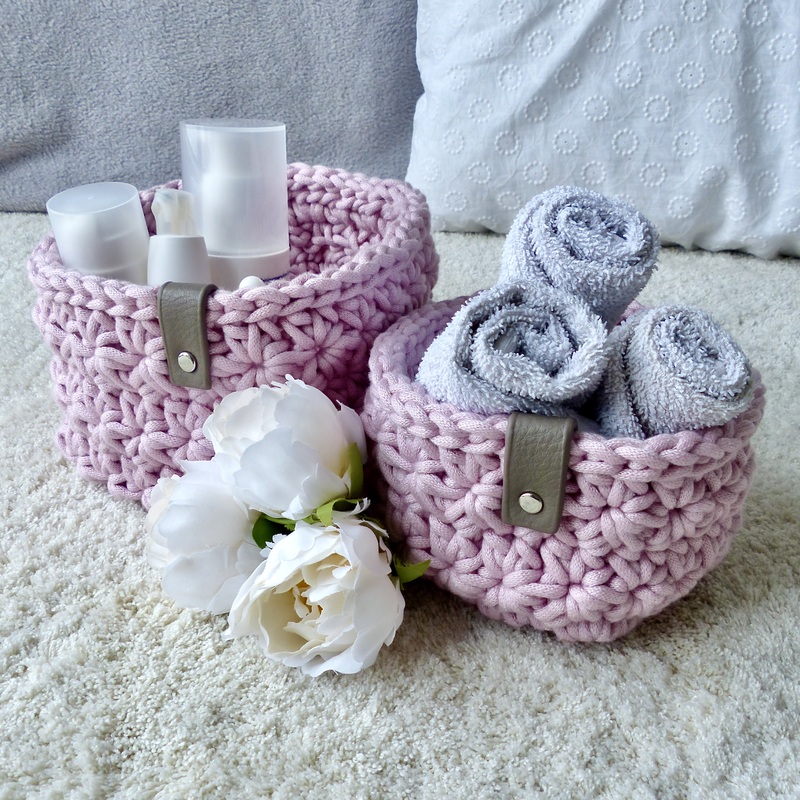 Dieses Utensilo ist aus extra dickem Bänchengarn mit einem schönen Blümchenmuster gehäkelt und ihr könnt damit im Bad, in der Küche oder im Kinderzimmer auf eine dekorative Art und Weise Ordnung schaffen.