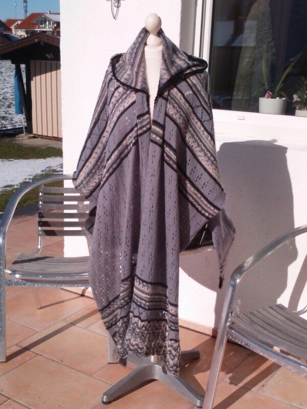 Lulatsch ist die umgangssprachliche Bezeichnung für einen großen Menschen mit schlampigem Gang. Für mich die perfekte Analogie für diesen XXL-Poncho zum „Rumschlampn“ (bayrisch für Nachlässig sein) und Reinkuscheln. Er ist ca. 120cm breit und 98cm (einfach) lang und für meine Größe eigentlich völlig überdimensioniert, aber ich liebe solche Riesenkuschelkleidung.