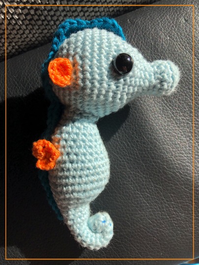 In dieser Anleitung zeige ich dir, wie du ein kleines Seepferd (z.B. für ein Mobile) nachhäkeln kannst. Es wird in zwei Teilen gehäkelt, in Spiralrunden als auch in geschlossenen Runden. Am Schluss müssen Kopf, Körper, Kamm und Flossen zusammengenäht werden.