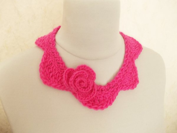 Dieser Schal/Kragen ist etwas für Könner, aber auch Anfänger sollten keine Scheu haben. In der Anleitung sind Häkelmaschen beschrieben, welche ich eigens für die Bögen entwickelt habe (keine Bange, supereinfach, aber effektiv). Der kleine Kragen ist schnell gehäkelt und etwas Besonderes. Er kann auch auf eine Bluse oder ein Shirt genäht werden. Einmal diesen Kragen gehäkelt, möchte man noch einen und noch einen häkeln. Vielleicht ein schönes Geschenk?