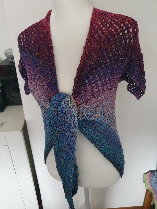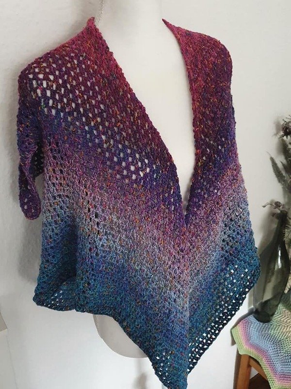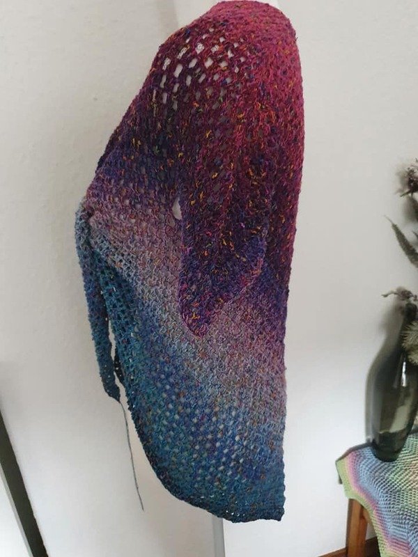 Du kannst jedes Materia mit passender Nadelstärkel verwenden das dir gefällt. Wir haben mit Farbverlaufsbobbeln gearbeitet. Die Angaben können abweichen und sollten nur als Richtwert gesehen werden.