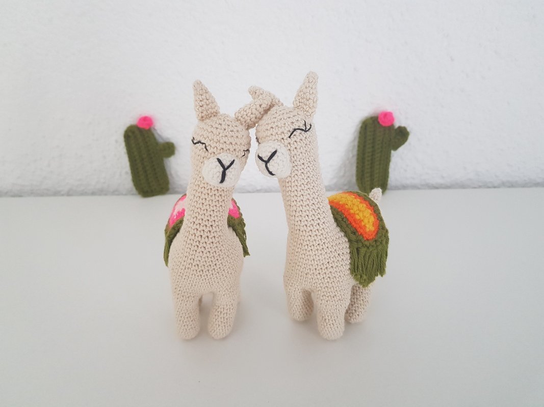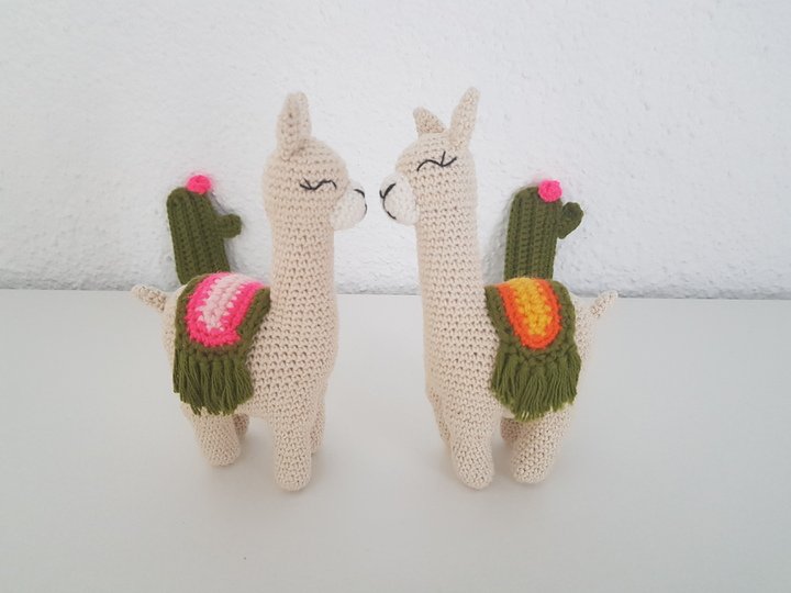 Das Lama ist ca. 15cm groß. Die Größe ist jedoch auch abhängig davon, wie fest oder locker gehäkelt wird. Bei der Verwendung anderer Wolle/Garn muss die Nadelstärke und auch die Wollmenge entsprechend angepasst werden.
