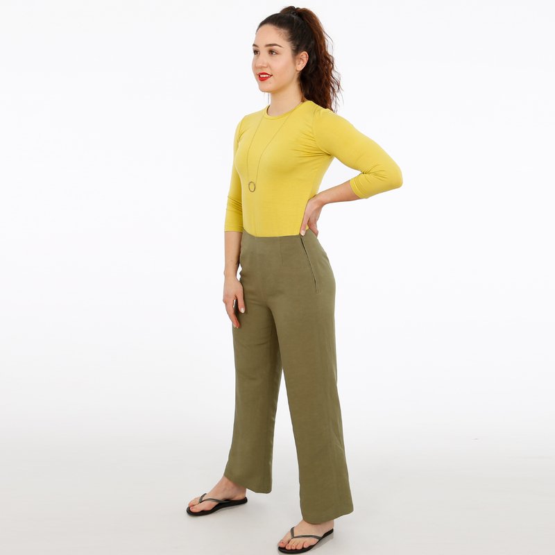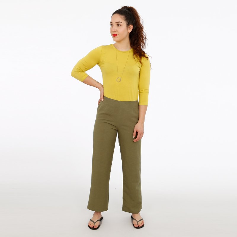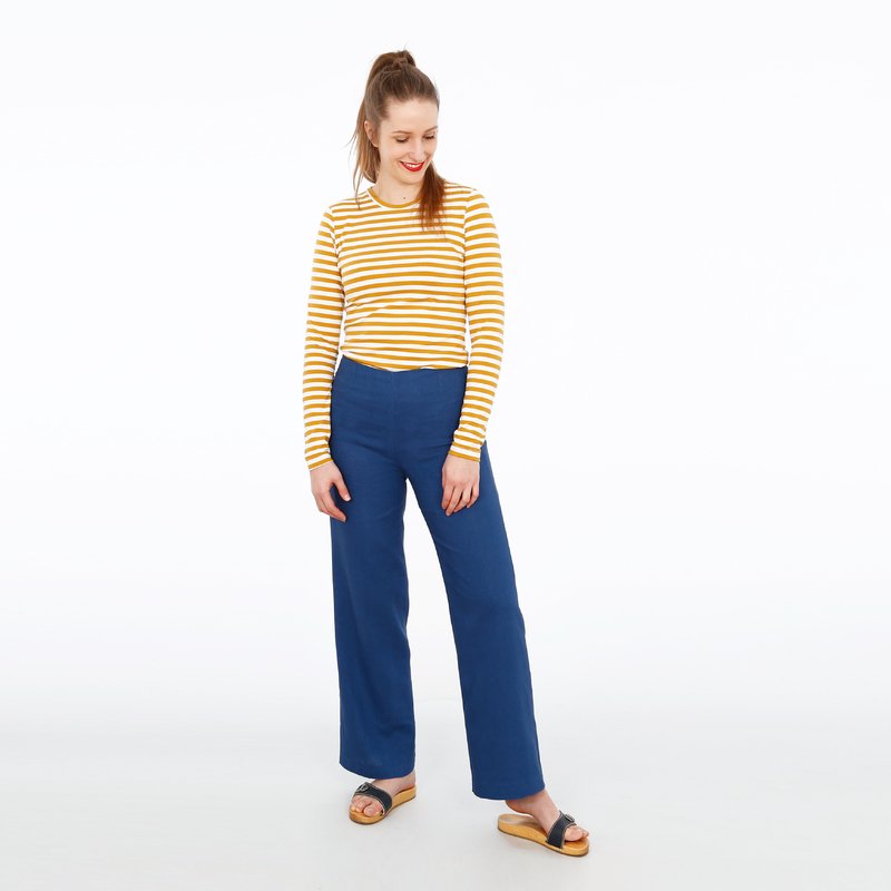 FRAU ELENA ist eine schlichte, High-Waist-Hose. Mit vier Abnähern schmiegt sie sich eng an die Taille, die Knöchel umspielt eine angenehme Weite, ein in die Seitennaht eingenähter Reißverschluss läßt Dich trotzdem leicht in Deine Hose hineinschlüpfen. FRAU ELENA liebt fließende weiche Stoffe, egal ob Leinen oder Wolle und passt sich mit zwei Beinlängen jeder Jahreszeit an.