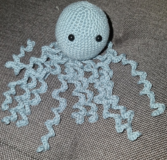 Ihr könnt die Krake auch größer machen, indem ihr eine Stärkeres Garn verwendet mit passender Nadelstärke.
