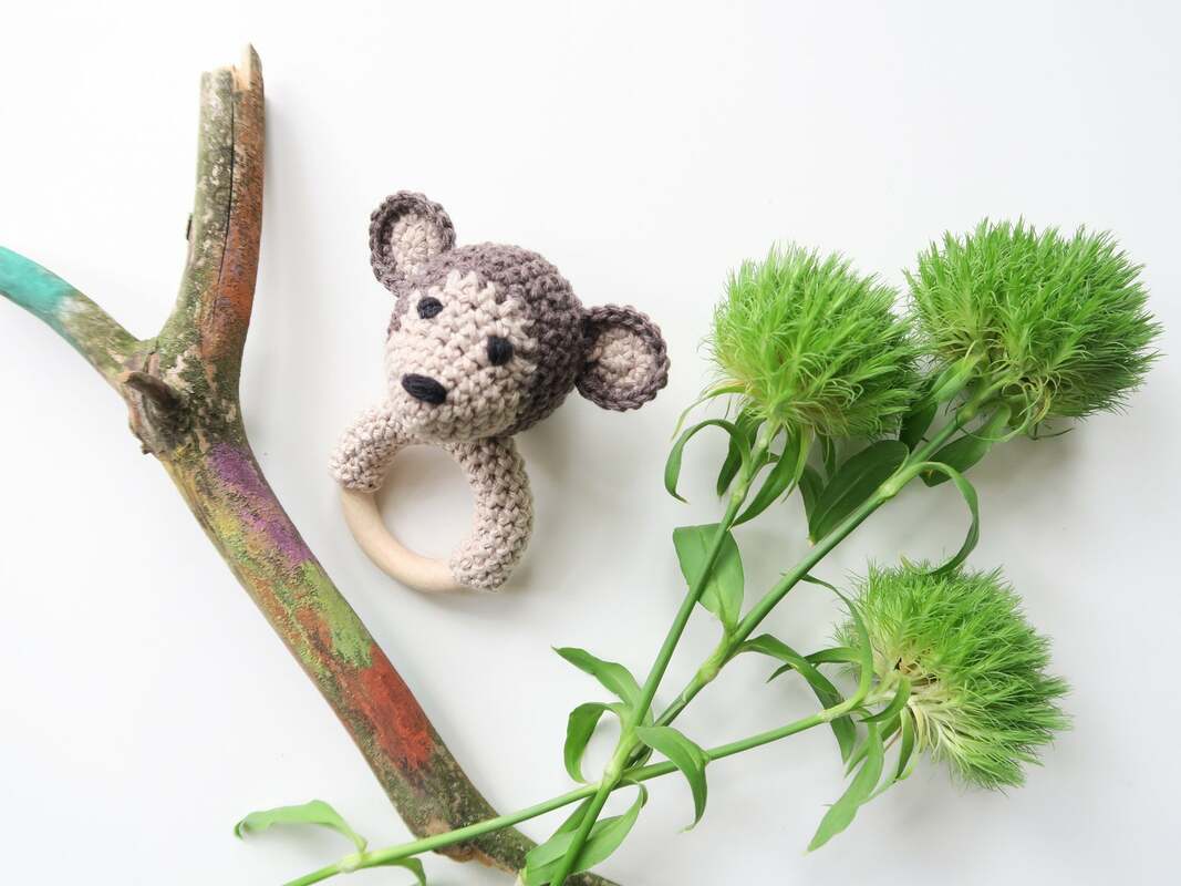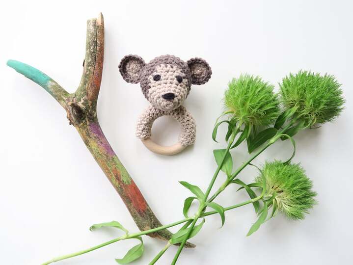 Beißring und Rassel in Einem. Somit ist der kleine Affe von GoldKindBerlin nicht nur ein Hingucker und Spielzeug, sondern erleichtert den Kleinen auch das Zahnen. Dieses Tutorial beschreibt die Herstellung der Rassel. Es handelt sich um KEIN fertiges Produkt.