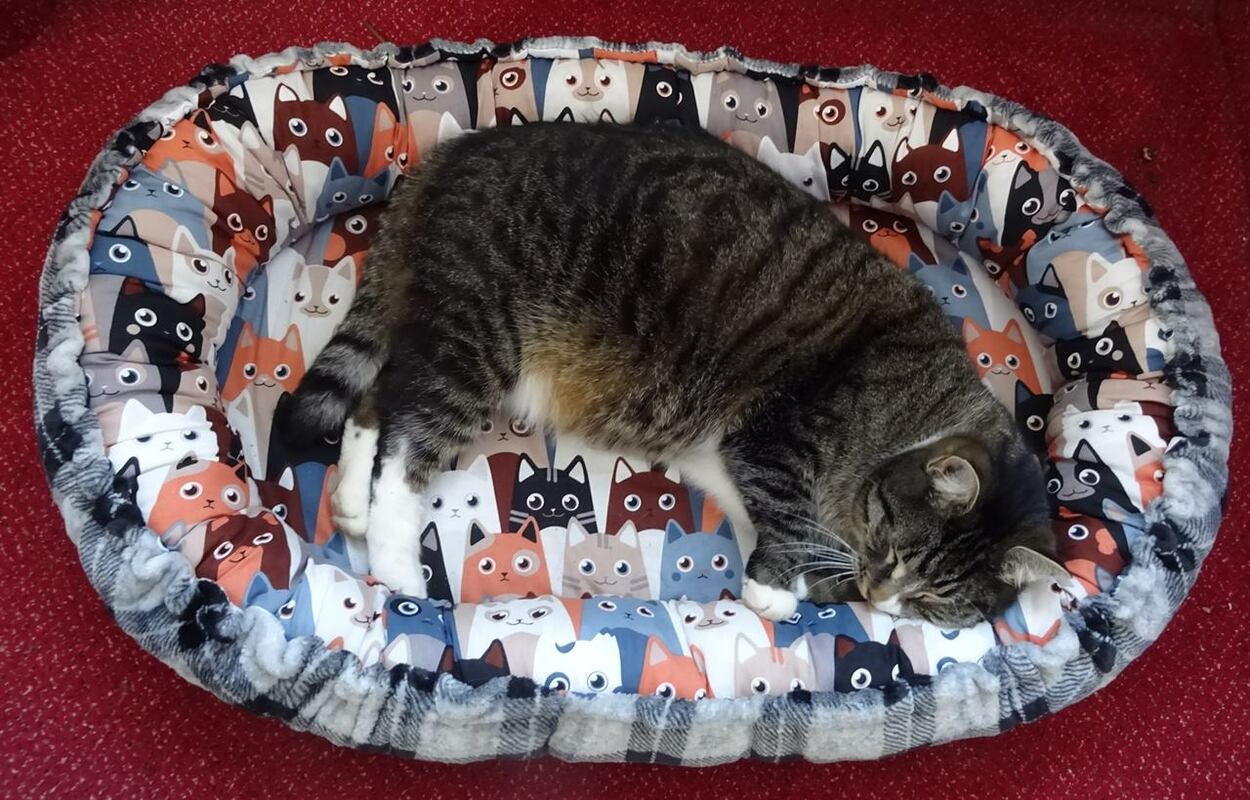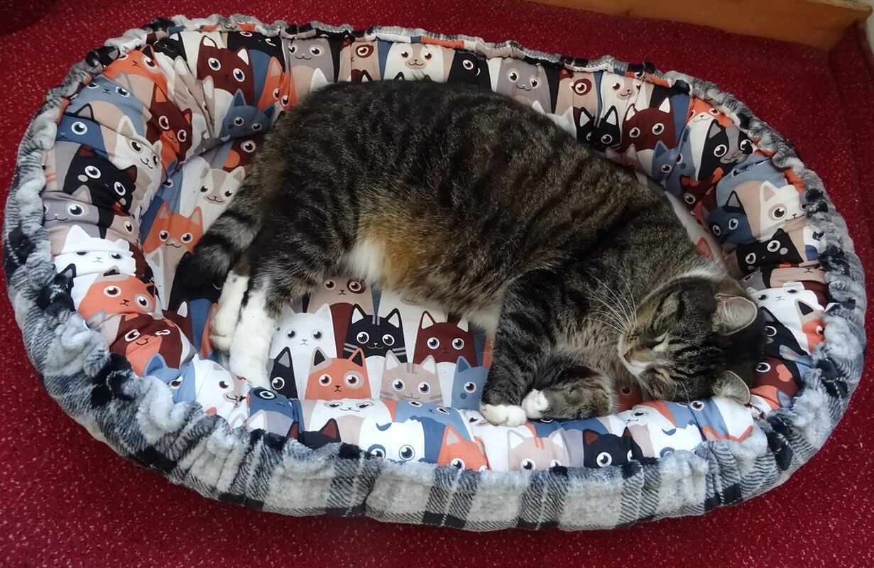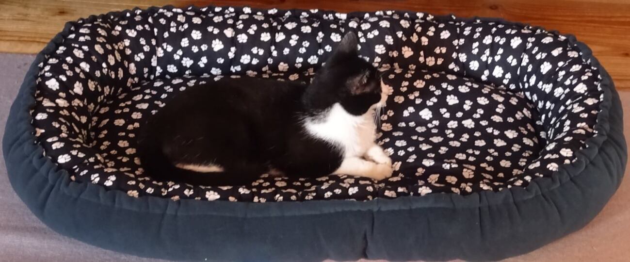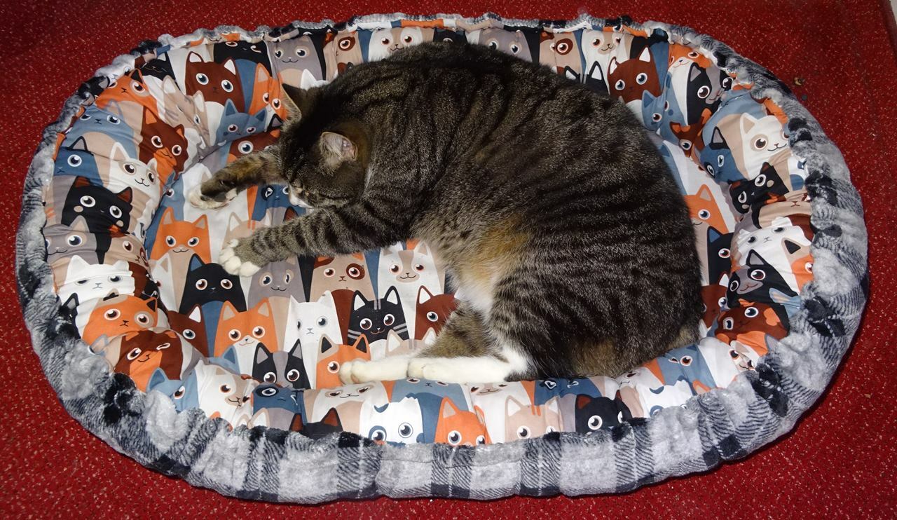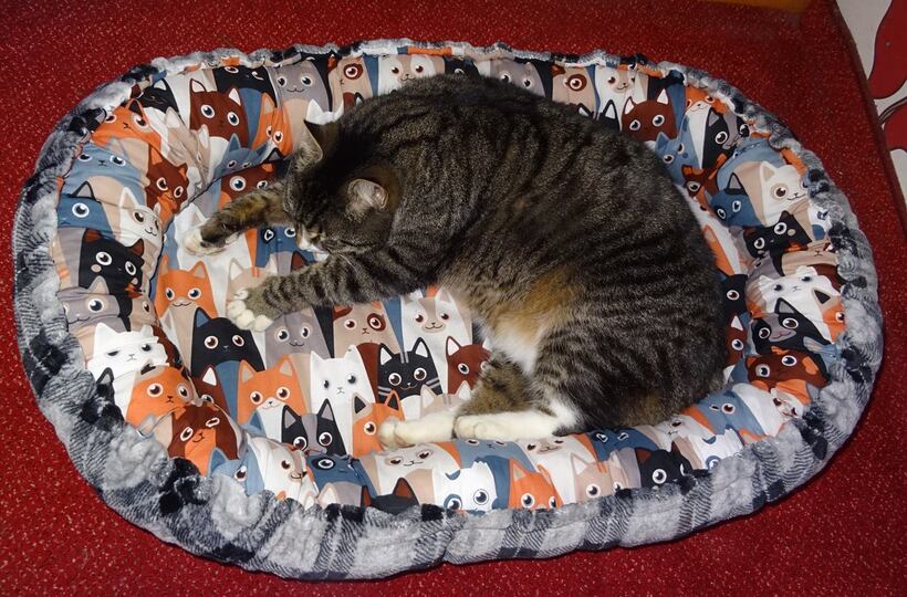 Größe 1, für kleine Kätzchen kann mit einem extra Kissen, auch ohne Volumenvlies genäht werden, bei allen anderen Größen empfehle ich für den Boden/die Liegefläche Volumenvlies.