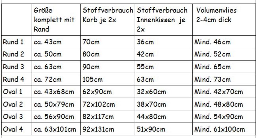 Eine Nähanleitung für ein süßes Körbchen, oval oder rund in je 4 Größen,