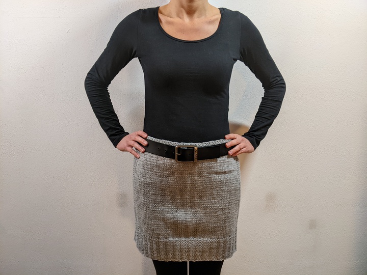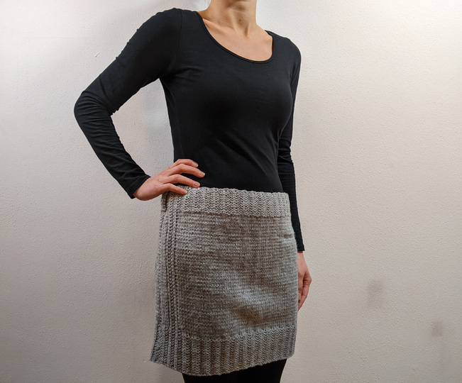 Cooler Strick-Rock für die kalte Jahreszeit! Der Rock ist super einfach zu stricken und hält kombiniert mit einer Strumpfhose im Winter schön warm. Durch den elastischen Bund passt der Rock perfekt und dank der zwei gestrickten Schlaufen kann ein Gürtel zusätzlichen Halt geben.