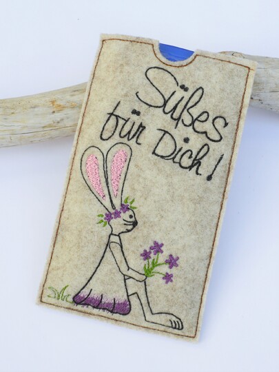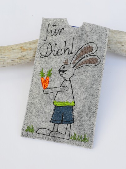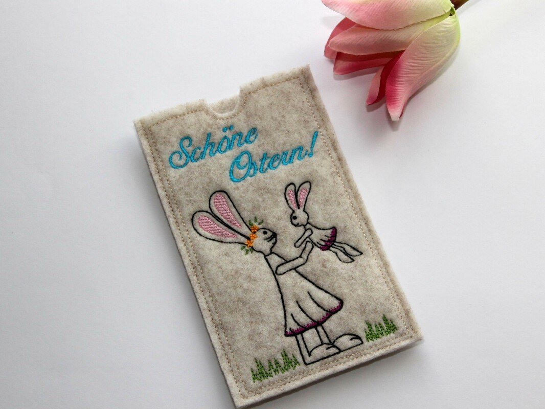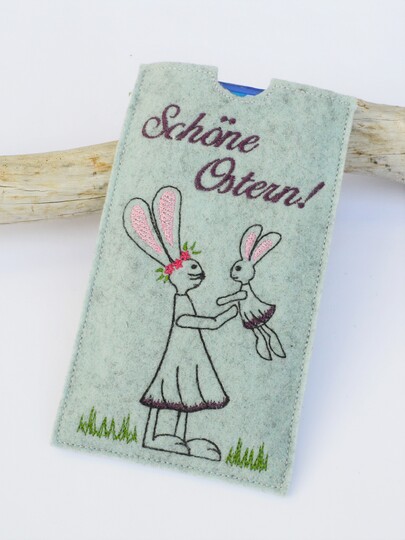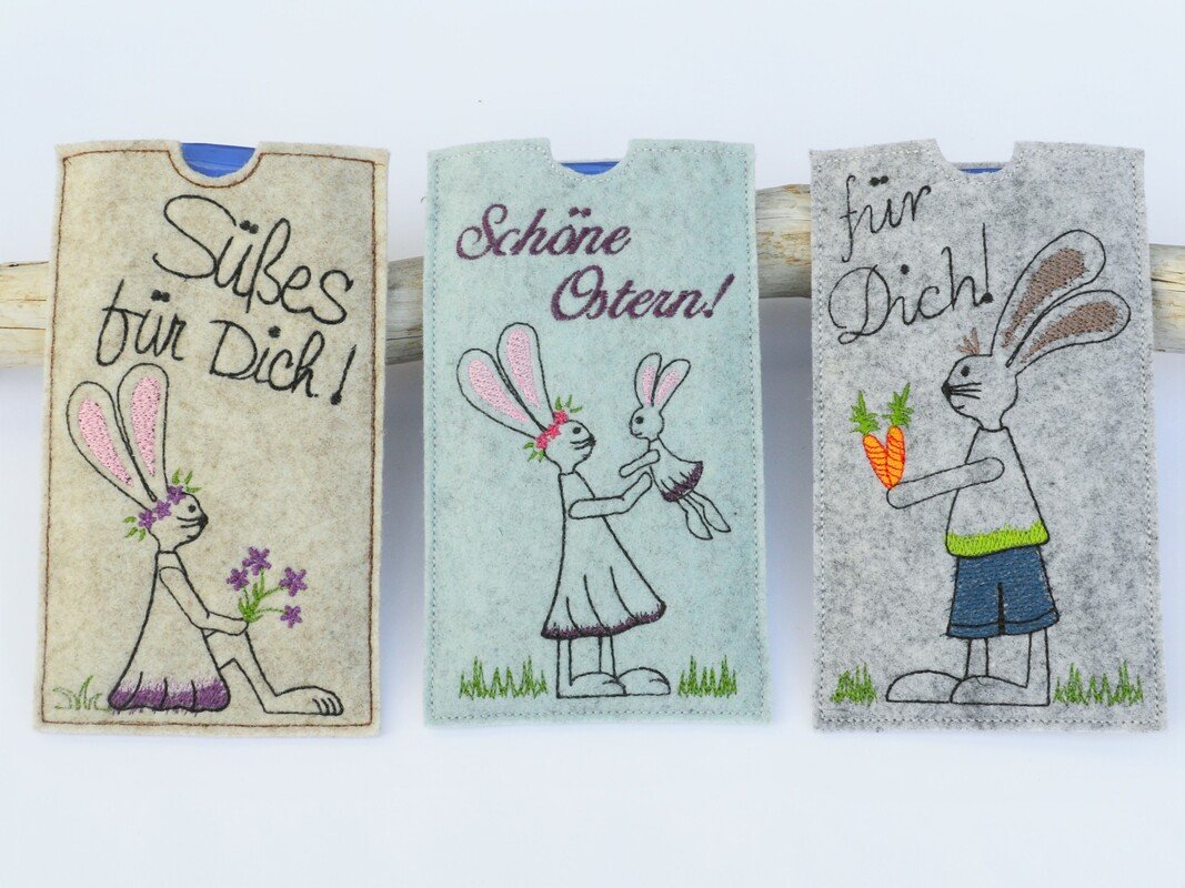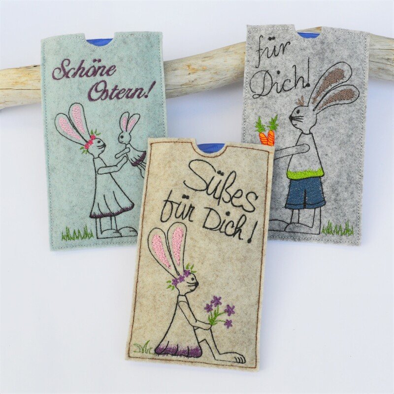 ITH Hüllen aus Filz oder Leder bestickt mit Hasenmama, Hasenjunge oder der Hasendame!
