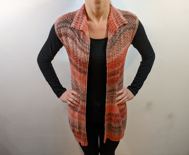 Kuschelige Long-Weste in warmen Farben! Durch den weiten Kragen und dem seitlich offenen Schnitt erhält diese Longweste einen besonderen Look.