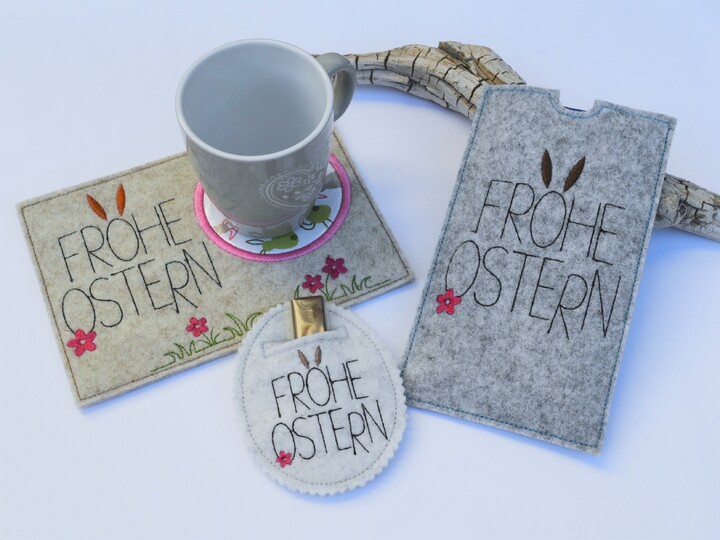 Ostergrüße verschenken, hier als SET mit Mugrug, Schokohülle/Wunscherfüller, denn Ostergrüße kann man so schön verpacken!