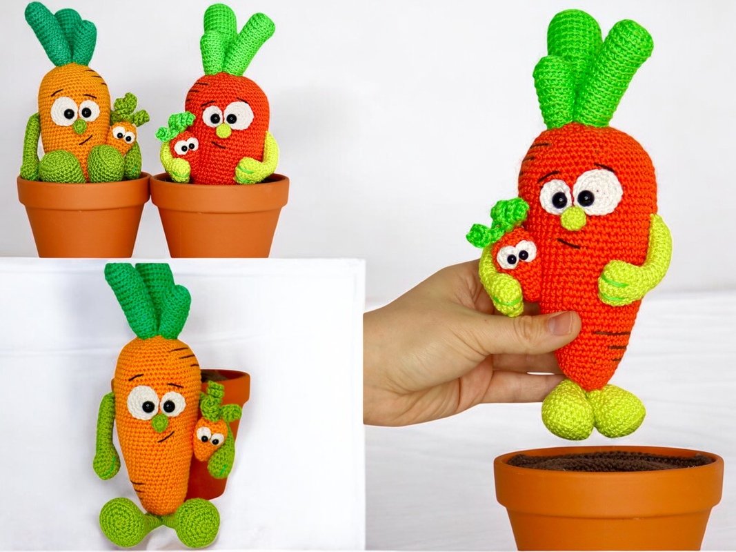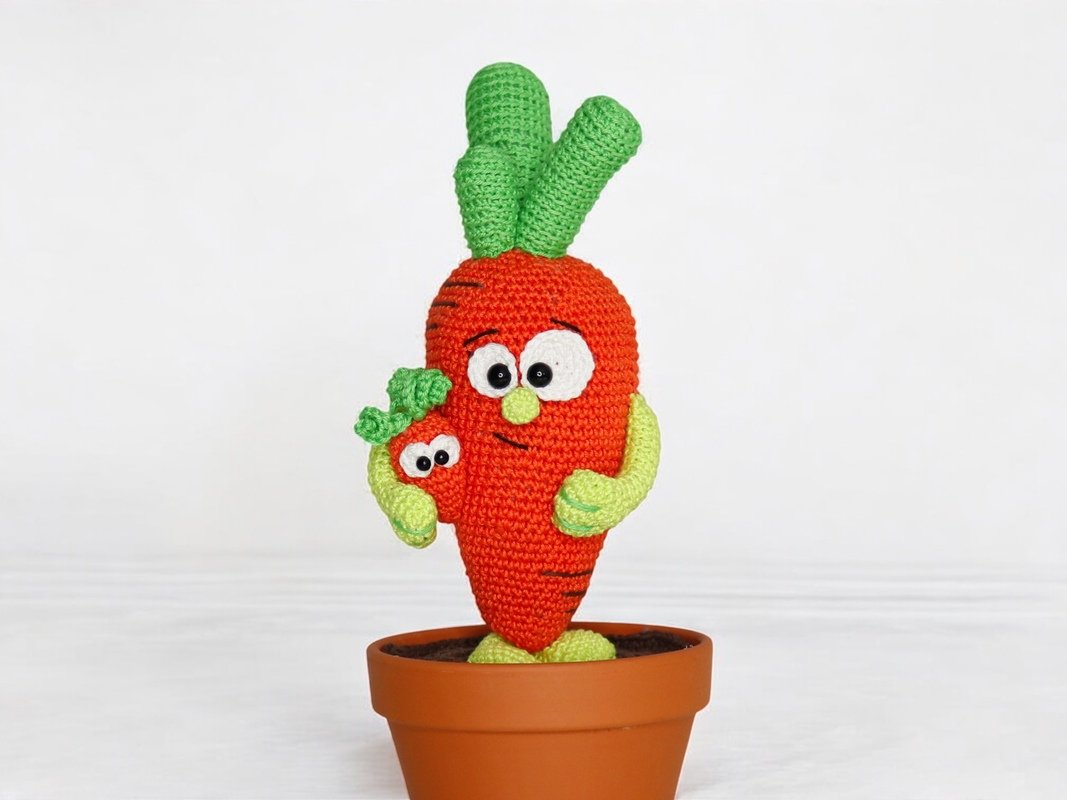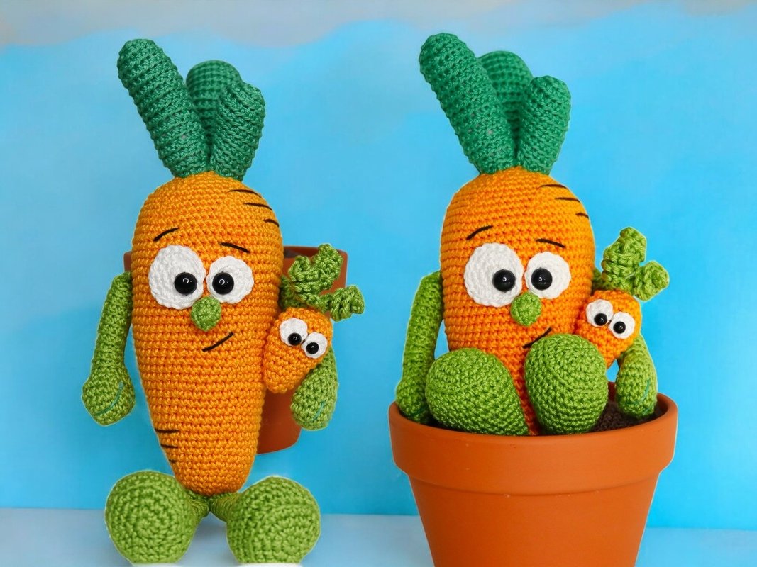 Du möchtest eine ausgefallene Deko haben, dann häkle dir diese süße Karotte mit Baby.