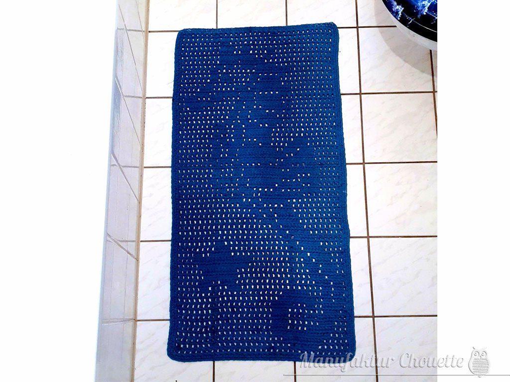 Wer gern nach dem Baden oder Duschen auf einen selbstgehäkelten Badteppich tritt, findet ganz sicher gefallen an dieser Anleitung.