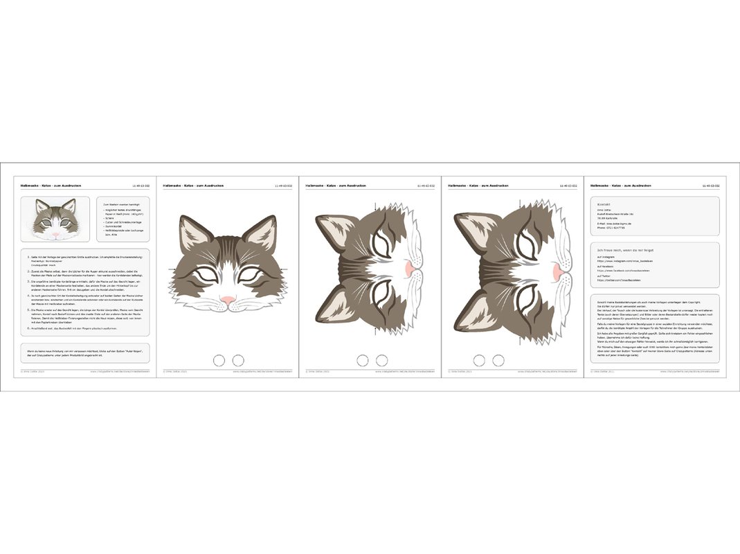 Du bekommst eine Datei mit Masken in drei Größen: Die kleinste passt einem Kind ab 2 Jahren, die größte einem Erwachsenen, die mittlere passt einigermaßen jedem.