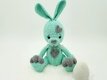 Mit den angegebenen Materialien (Baumwolle 125 m - 50 g) und Häkelnadel 2.5 mm wird der Hase mit Herz ca. 36 cm groß.