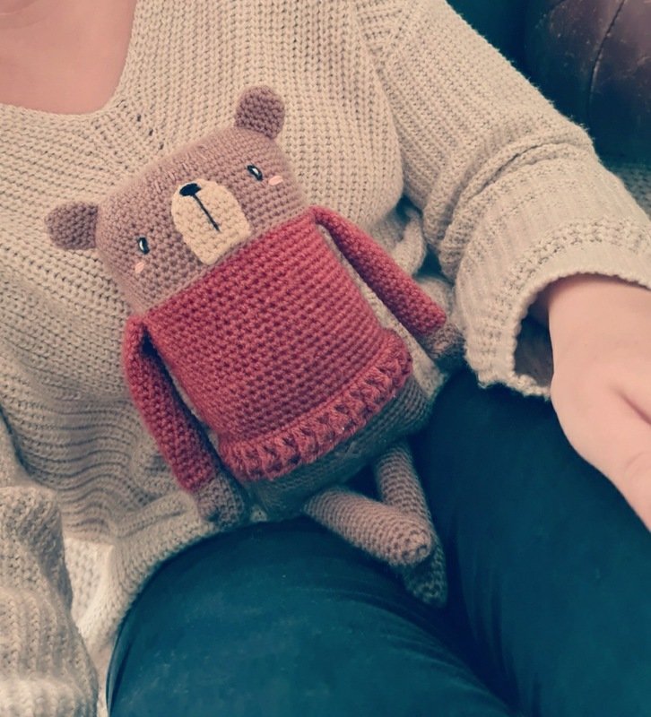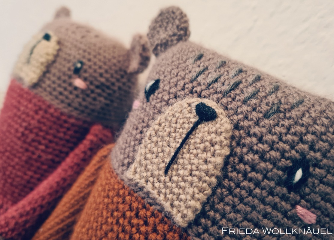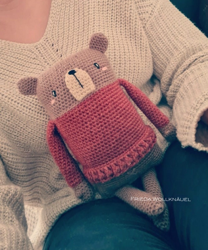 Mit dem angegebenen Garn misst Benny ca. 34 cm von Kopf bis Fuß.