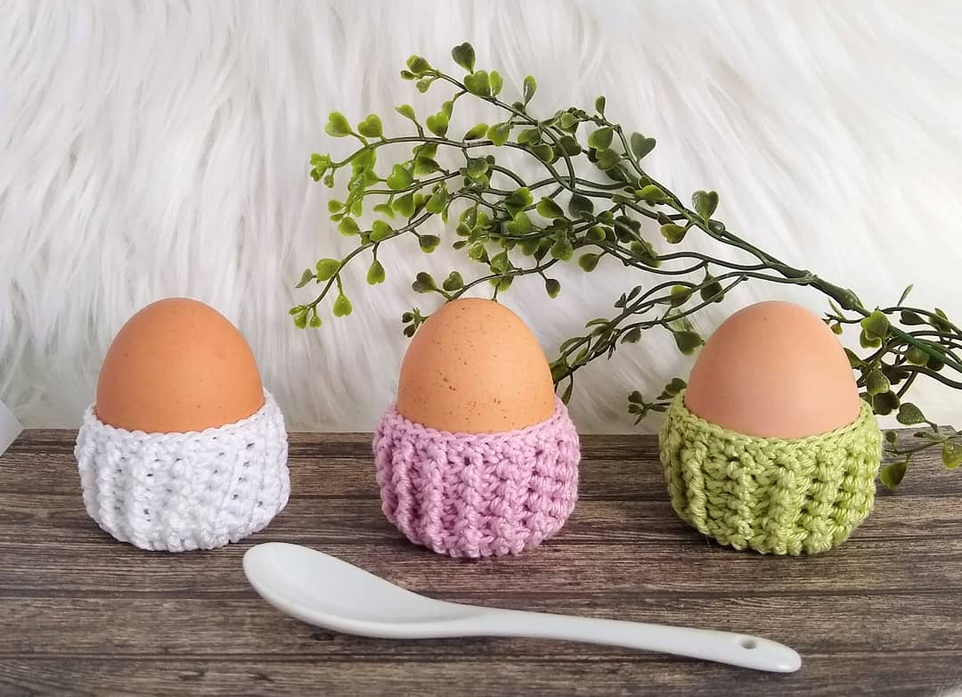 Häkelanleitung für einen zuckersüßen kleinen Eierbecher im Rippenmuster, gehäkelt aus festen Maschen, Stäbchen und Relief-Stäbchen.