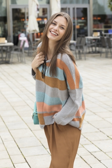 200 (250) g Hellgrau (Fb 32), je 100 (150) g Bernstein (Fb 38) und Mint (Fb 21) sowie je 50 (100) g Orange (Fb 39) und Peach (Fb 18) „365 Cashmere“ (77% Baumwolle, 15% Kaschmir, 8% Polyamid, LL = 175 m/50 g) von LANA GROSSA