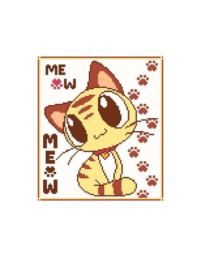 Meow ist ein digitales Diagramm, das für verschiedene Häkeltechniken verwendet werden kann, feste Maschen, halbe Stäbchen, Stäbchen, tunesisch Häkeln, Bobble Stitch, c2c. Alternativ kann dieses Produkt auch für Kreuzstich, Stricken, Hamma-Perlen, Kunststoff-Leinwand und andere Projekte verwenden werden.