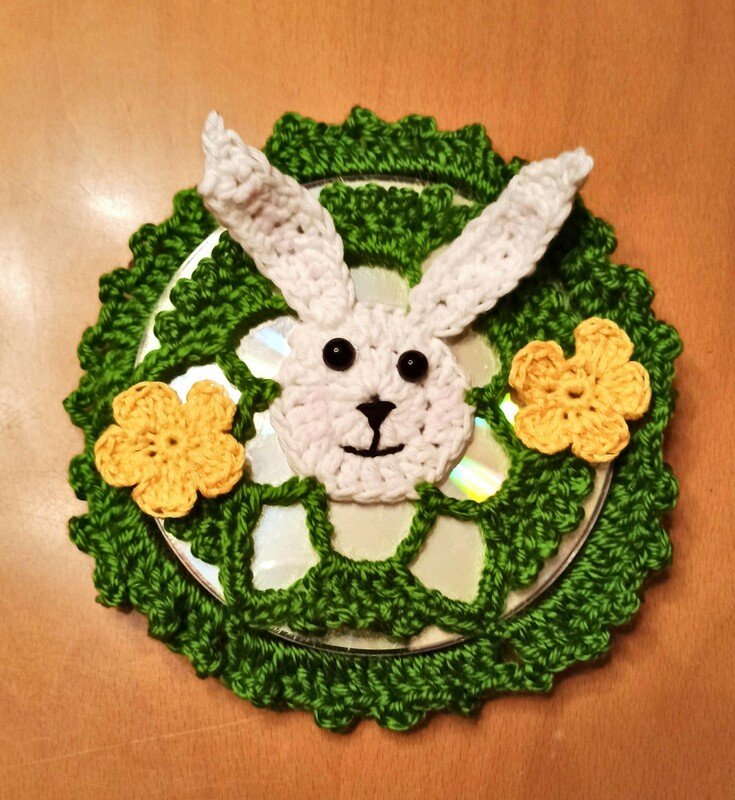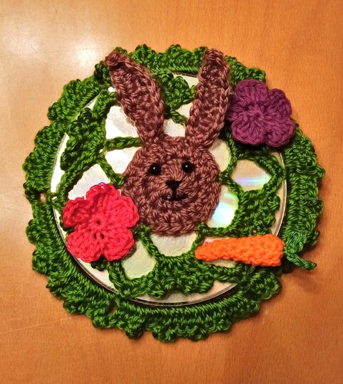 Dies ist nun die 3. Idee um die schönen CD's zu recyceln. Und da nun bald Ostern ist mit einem süßen Hasenkopf :-)