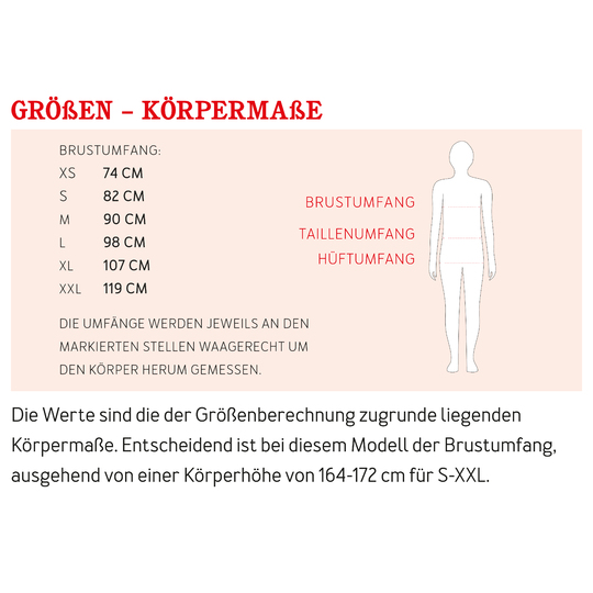 6 Doppelgrößen XS (146/152) bis XXL (50/52)