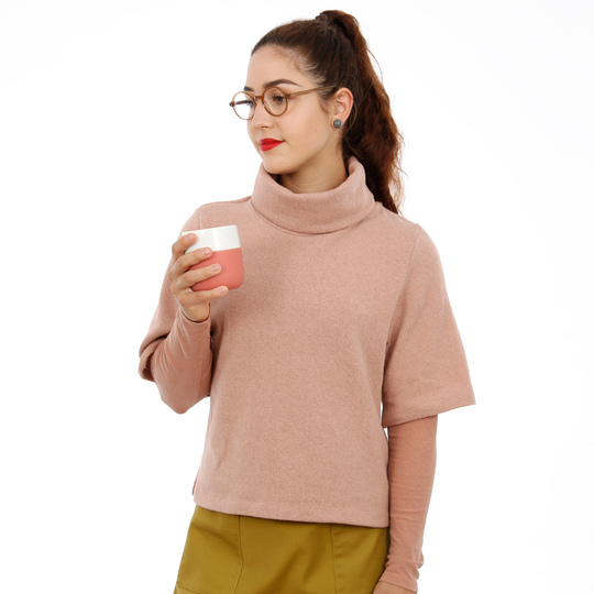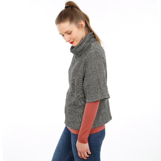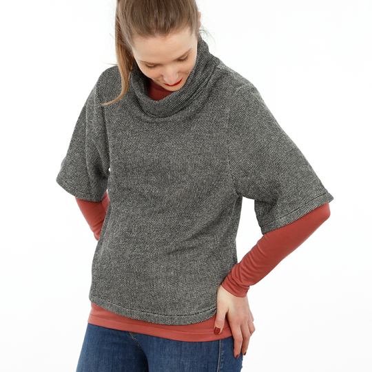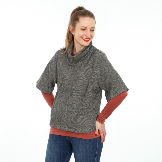 Mit FRAU DÖRTE haben alle Liebhaberinnen des Zwiebellooks den Volltreffer gelandet! Der Pullover mit weiten, halblangen Ärmeln in einem extra tiefen Armloch und einem lockeren Rollkragen und kurzem weiten Rumpf lässt sich perfekt zu Langarmshirts kombinieren oder auch solo tragen. So wird Dir bei jeder Gelegenheit warm ums Herz.