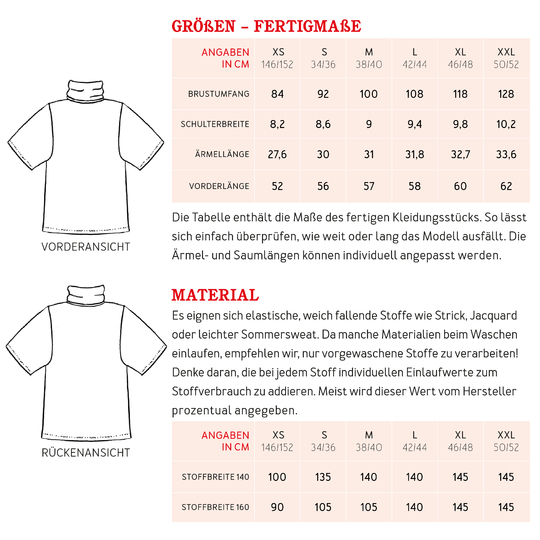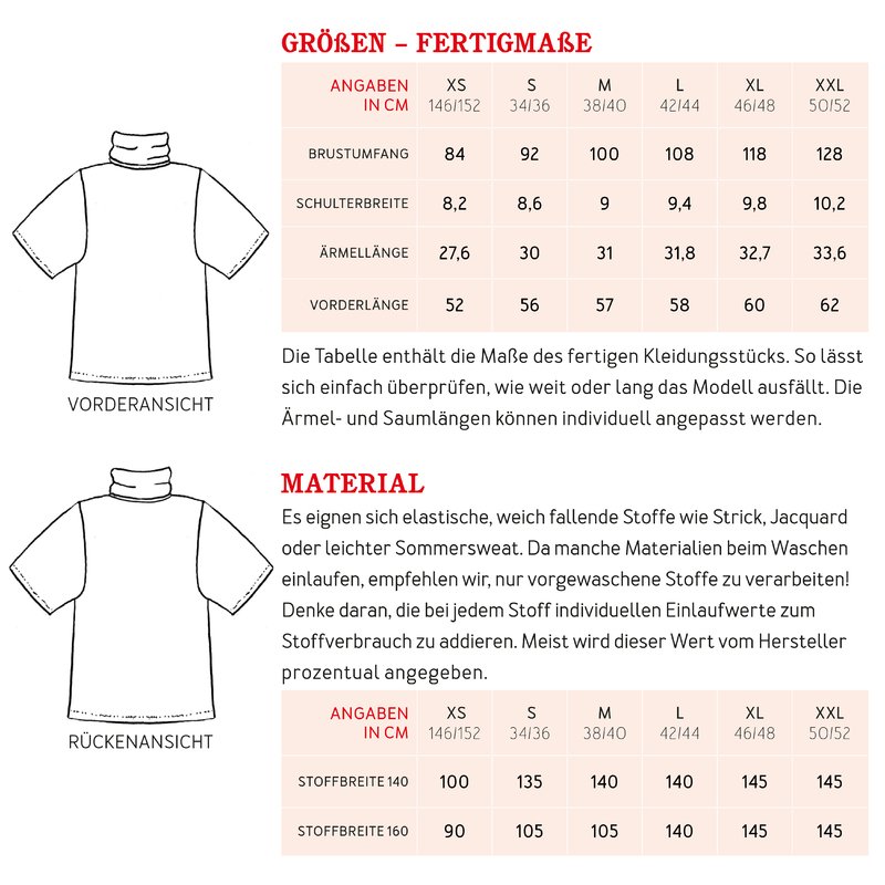 Umfang: Nähanleitung - 9 Seiten , Schnittmuster - 17 Seiten (die zusammengeklebt werden müssen)