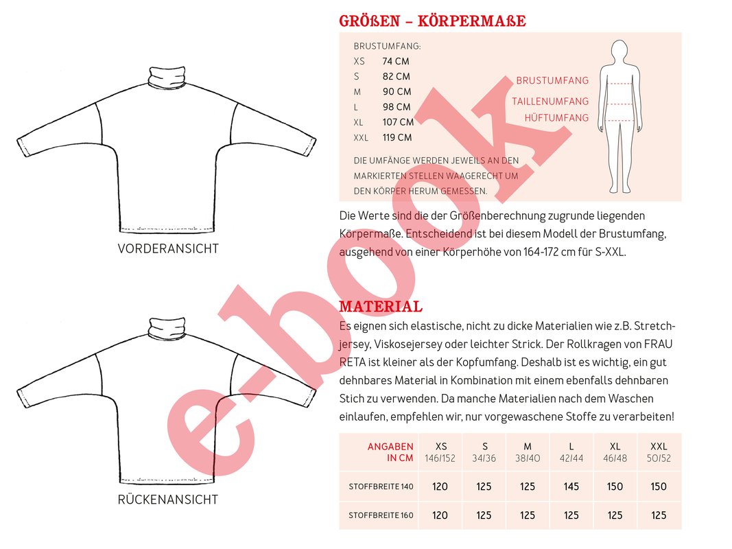 6 Doppelgrößen XS (146/152) bis XXL (50/52)