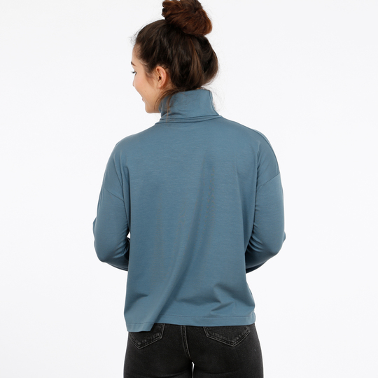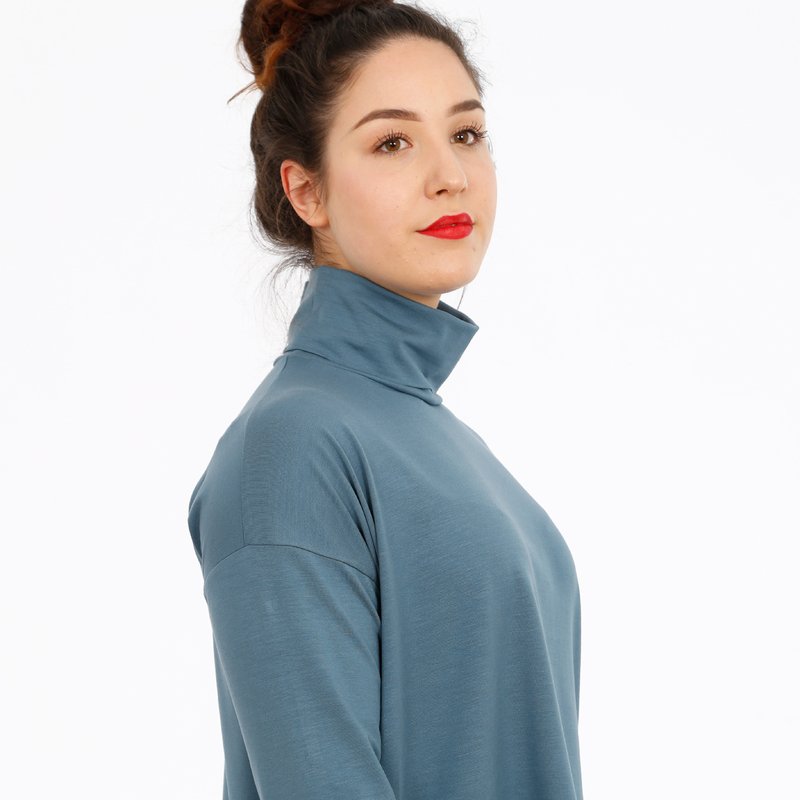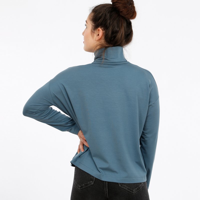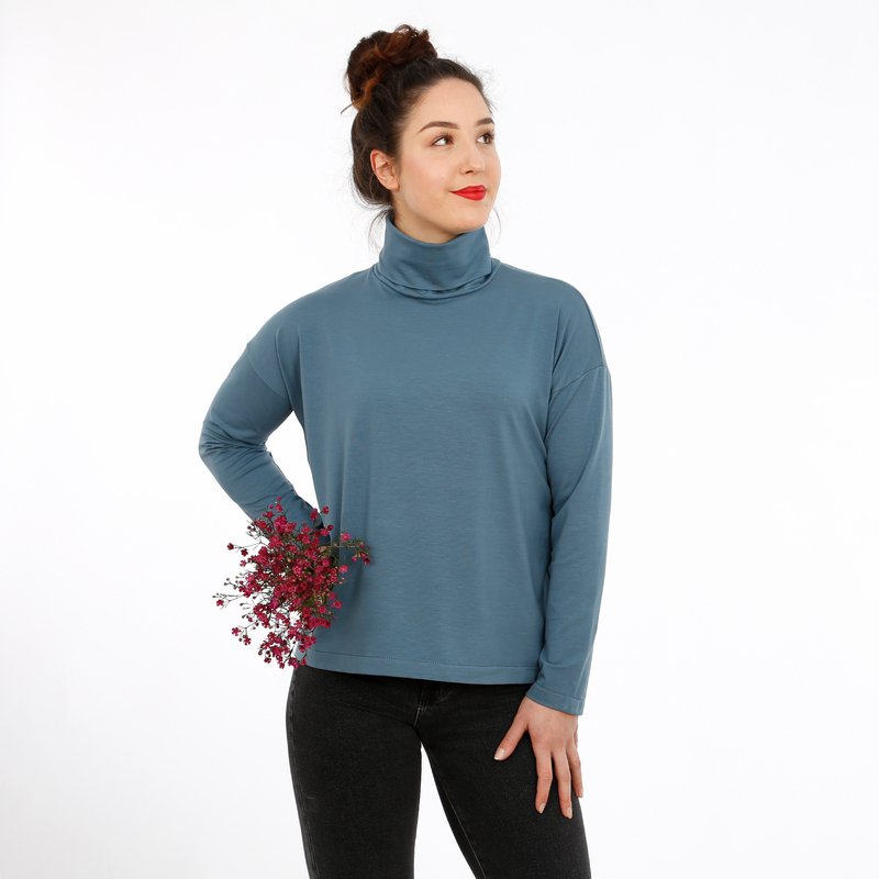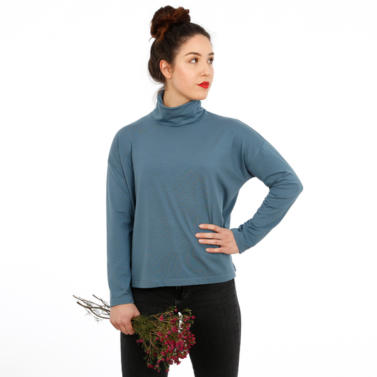 Dürfen wir vorstellen? FRAU RETA ist ein vielseitiges Rollkragenshirt mit zahlreichen Vorzügen! Das Langarmshirt punktet mit einer lässigen Weite, schönen Fledermausärmeln mit Ärmelabtrennung und einem schlanken Rollkragen. Die schmalen Ärmel bilden einen schönen Kontrast zu dem kurzen und locker geschnittenen Rumpf. Mit ihrer unkomplizierten Passform lässt sich FRAU RETA mit vielen Styles kombinieren.