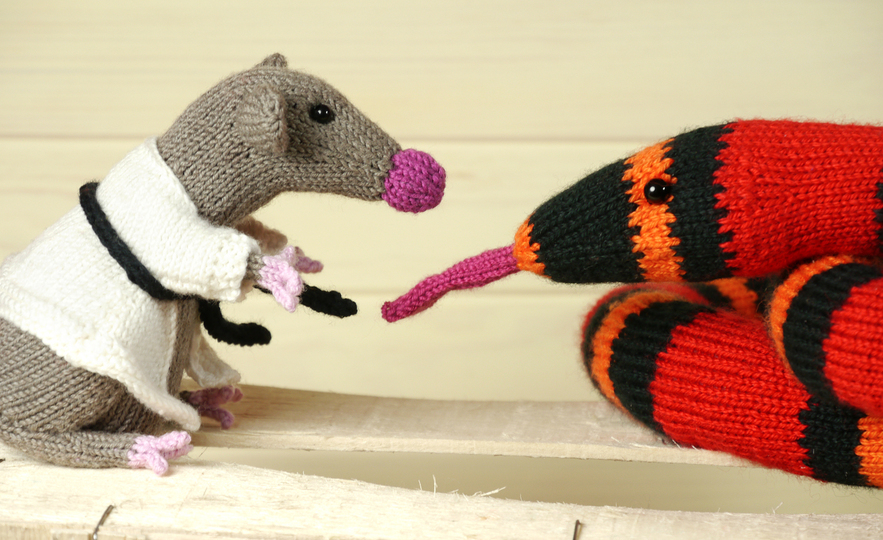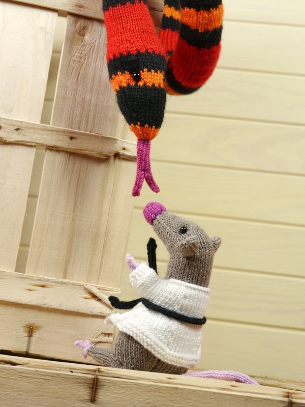 Rüdiger, die Honduras-Königsnatter, hat Ratten und Mäuse zum Fressen gern – aber da hat er die Rechnung ohne Chuck N. gemacht. Der besitzt nämlich einen schwarzen Gürtel in Karatte, einer speziellen Kampfsportart für kleine Nagetiere. Und als Rüdiger sich mit niederen Absichten auf Chuck zuschlängelte, erlebte er sein blaues Wunder: Ruckzuck hatte Chuck ihn nämlich so verknotet, dass er nicht mehr wusste, wo vorne und hinten ist!