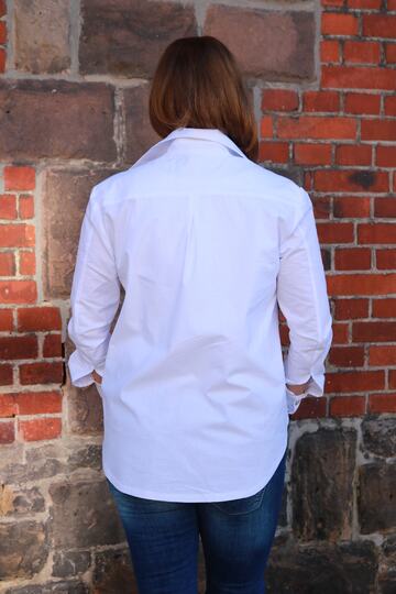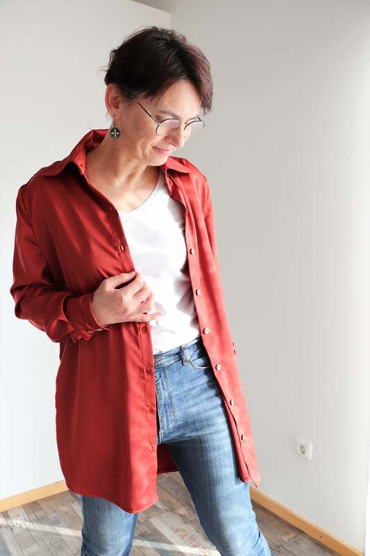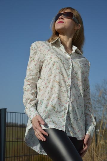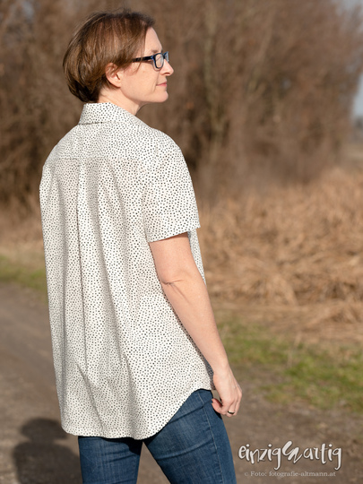 LIVORNO ist eine locker geschnittene Bluse mit leicht überschnittenen Schultern. Sie ist im Detail klassisch konzipiert. Im Schnitt sind 3 Längen enthalten. Du kannst zwischen Bluse, Longbluse und Kleid wählen. Ebenso kannst du zwischen kurzärmlig gesäumt oder langärmlig mit Manschetten wählen. Die Bluse ist mit einer klassischen Knopfleiste versehen. Im Rückteil befindet sich eine Passe und eine Quetsch- oder Kellerfalte.
