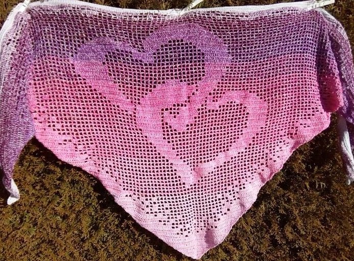 Hier kann man ein cooles Motivhäkeltuch nacharbeiten, mit tollem Herzmotiv. Dieses Motivtuch ist ein Hingucker und lässt die Herzen aller höher schlagen. An kalten Wintertagen als Schal, aber auch an lauen Sommerabenden - um die Schulter, Hals oder auch als Hüfttuch für viele Gelegenheiten perfekt geeignet. Auch für Kinder, da es eine angenehme Grösse hat.