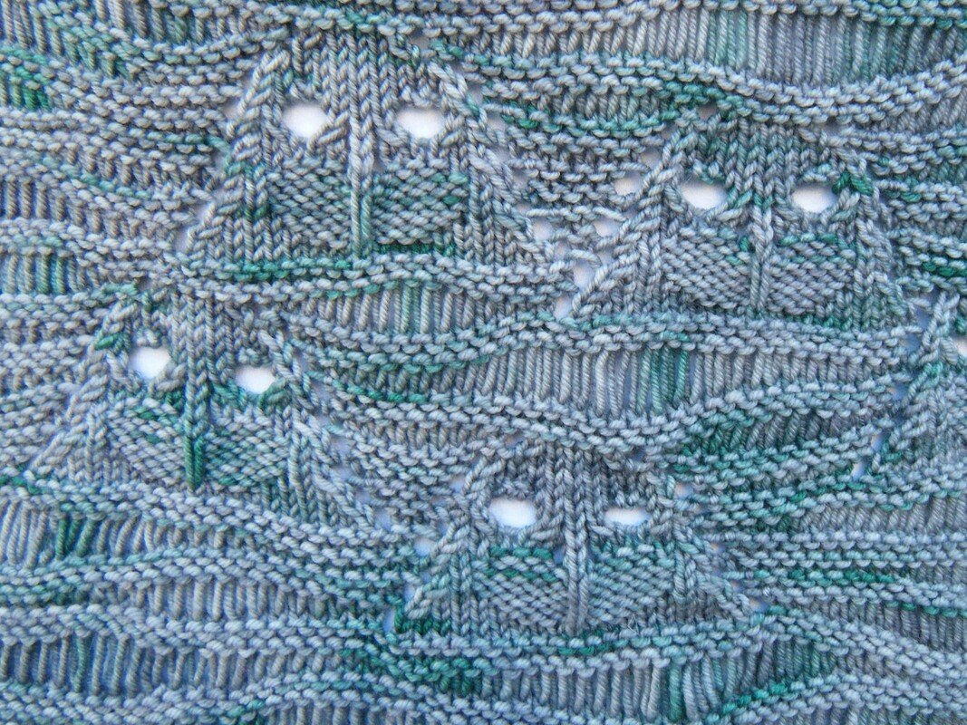 Das Muster besteht mehrheitlich aus rechten Maschen und ganz vielen Umschlägen. Es strickt sich kurzweilig nach Chart. Dank des Inputs von Euch lieben Strickerinnen, habe ich darauf geachtet, dass die Reihenzahlen gut lesbar sind und es eine Klebeanleitung für die Charts gibt.